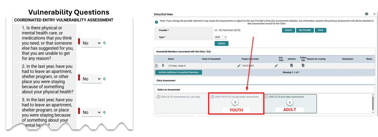 - When assessing clients ages 24 and younger for a Front Door Assessment you must start by filling out the 2026 CE 25 and older Assessment (The assessment defaults to this).